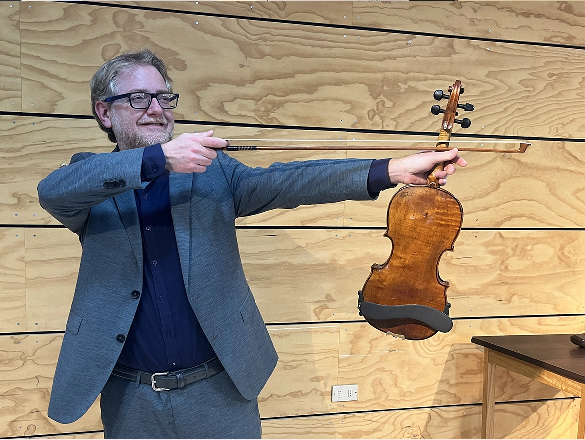 Por su parte, el profesor Ernesto Niño subrayó la relevancia de la experiencia y el impacto que genera en la formación de los estudiantes. “Acá en la Academia tenemos una cátedra de violín importante, así que creo que la visita del profesor Lamotte es un gran paso desde el punto de vista pedagógico”, afirmó, resaltando que este tipo de instancias amplían las perspectivas del trabajo académico y artístico.